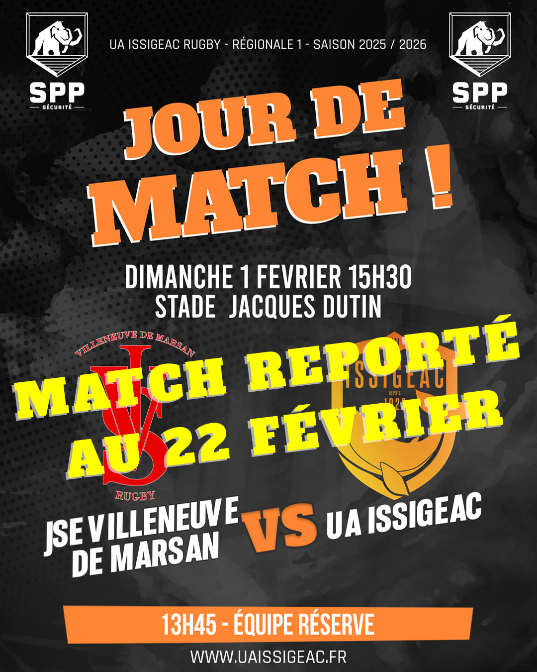 Suite aux intempéries de ces derniers jours, la municipalité de Villeneuve-de-Marsan a pris un arrêté interdisant la pratique sportive sur les installations municipales. Cette décision s’impose aux instances sportives, qui ont officialisé le report de la rencontre initialement prévue le dimanche 1er février. Le match opposant la Jeunesse Sportive de Villeneuve-de-Marsan à l’Union Athlétique Issigeacoise est ainsi reprogrammé au dimanche 22 février 2026.