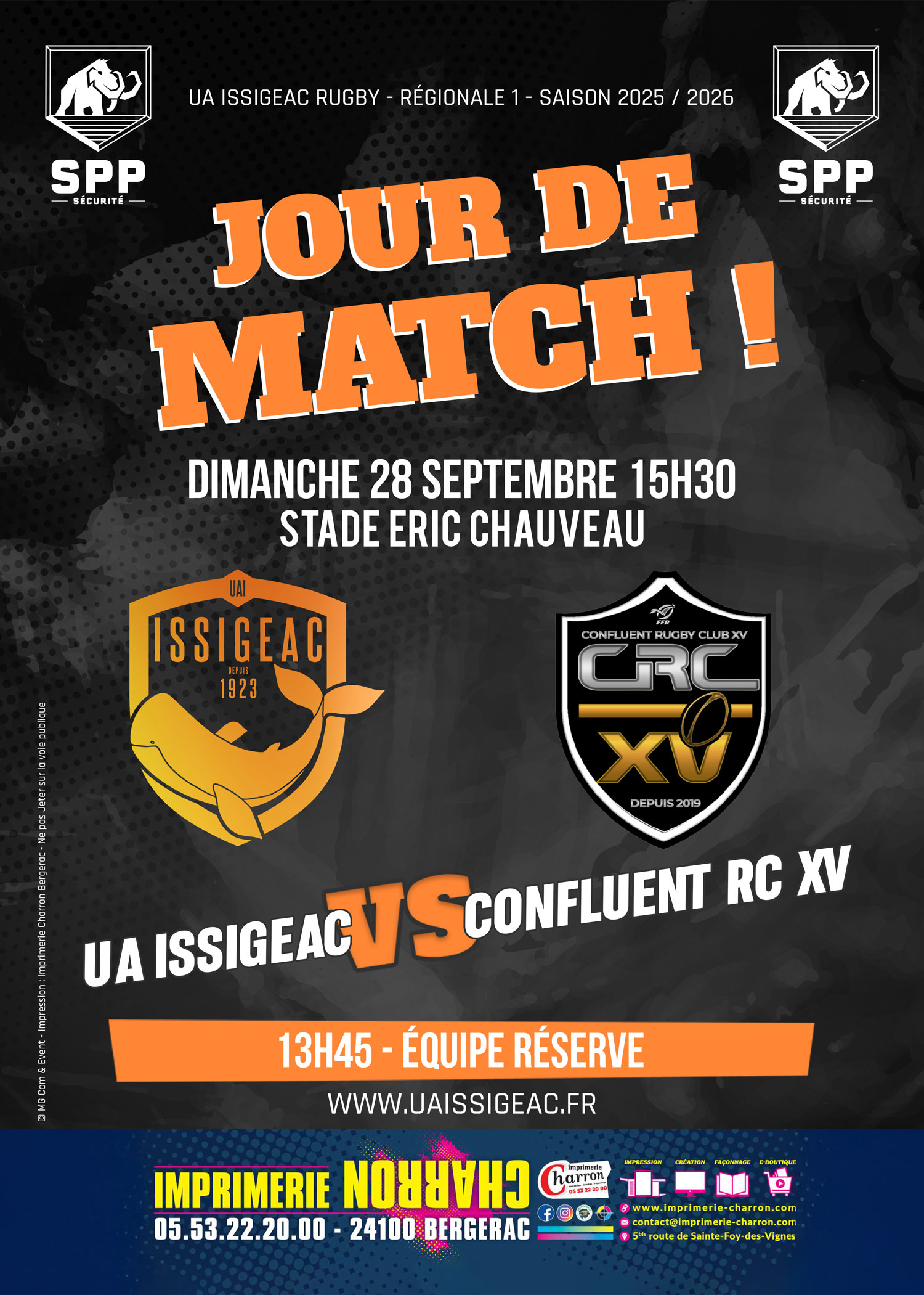 Dimanche 28 septembre, les oranges et noirs feront leurs grands débuts à la maison. La 2ème journée du championnat de Régionale 1 se jouera au stade Éric Chauveau d’Issigeac avec la réception du Confluent Rugby Club XV.