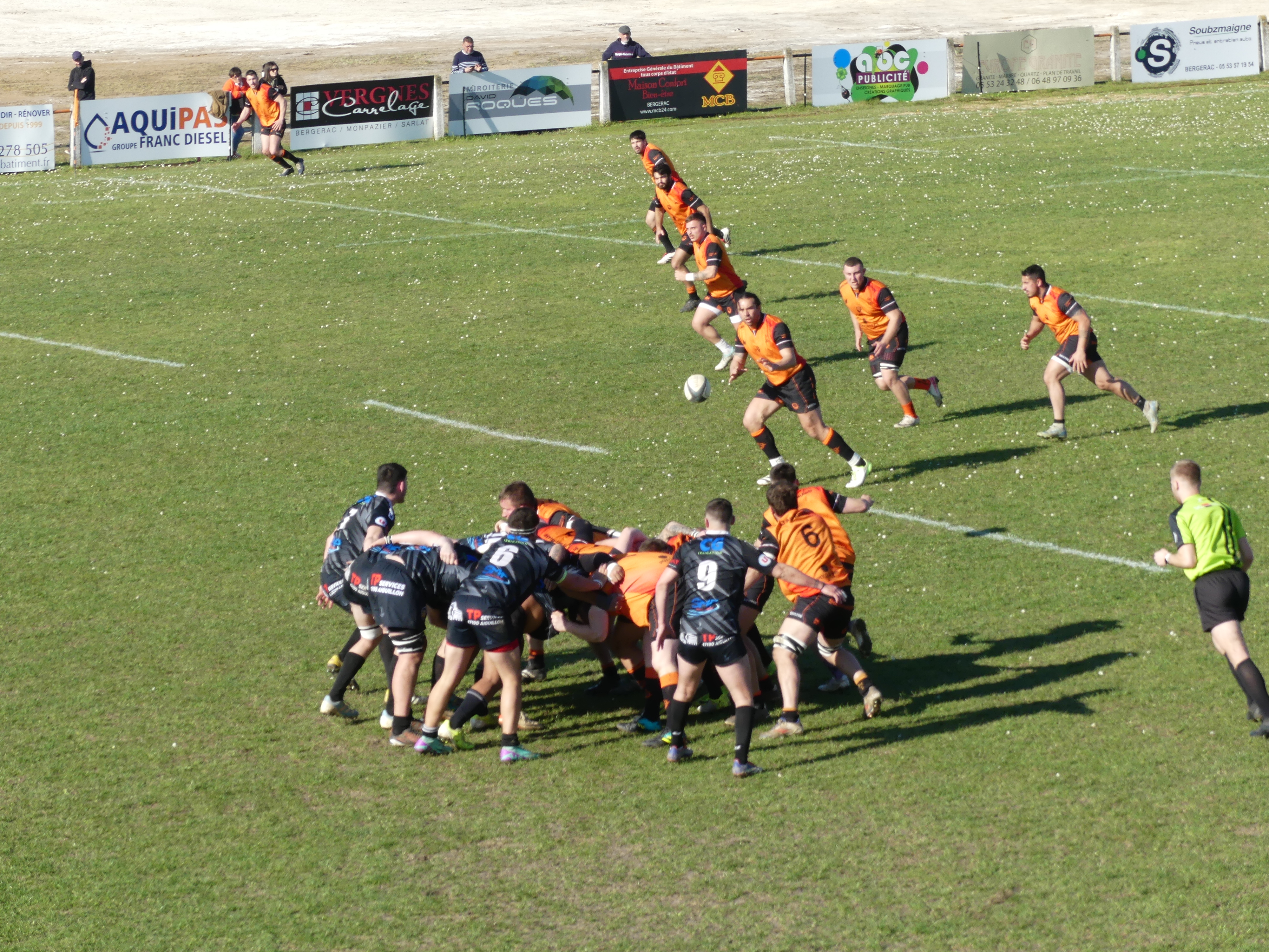 Issigeac va répondre par la complémentarité de son effectif, avec le travail de sape de ses avants, la créativité de Mathhew Farmer, véritable chef d'orchestre, et l'énergie de ses trois quarts. Enzo Vigier aplatit en coin, Michaud transforme, et les orange et noir ont repris les devants, avec le bonus offensif à l'entrée de la dernière ligne droite (29-28, 68e).