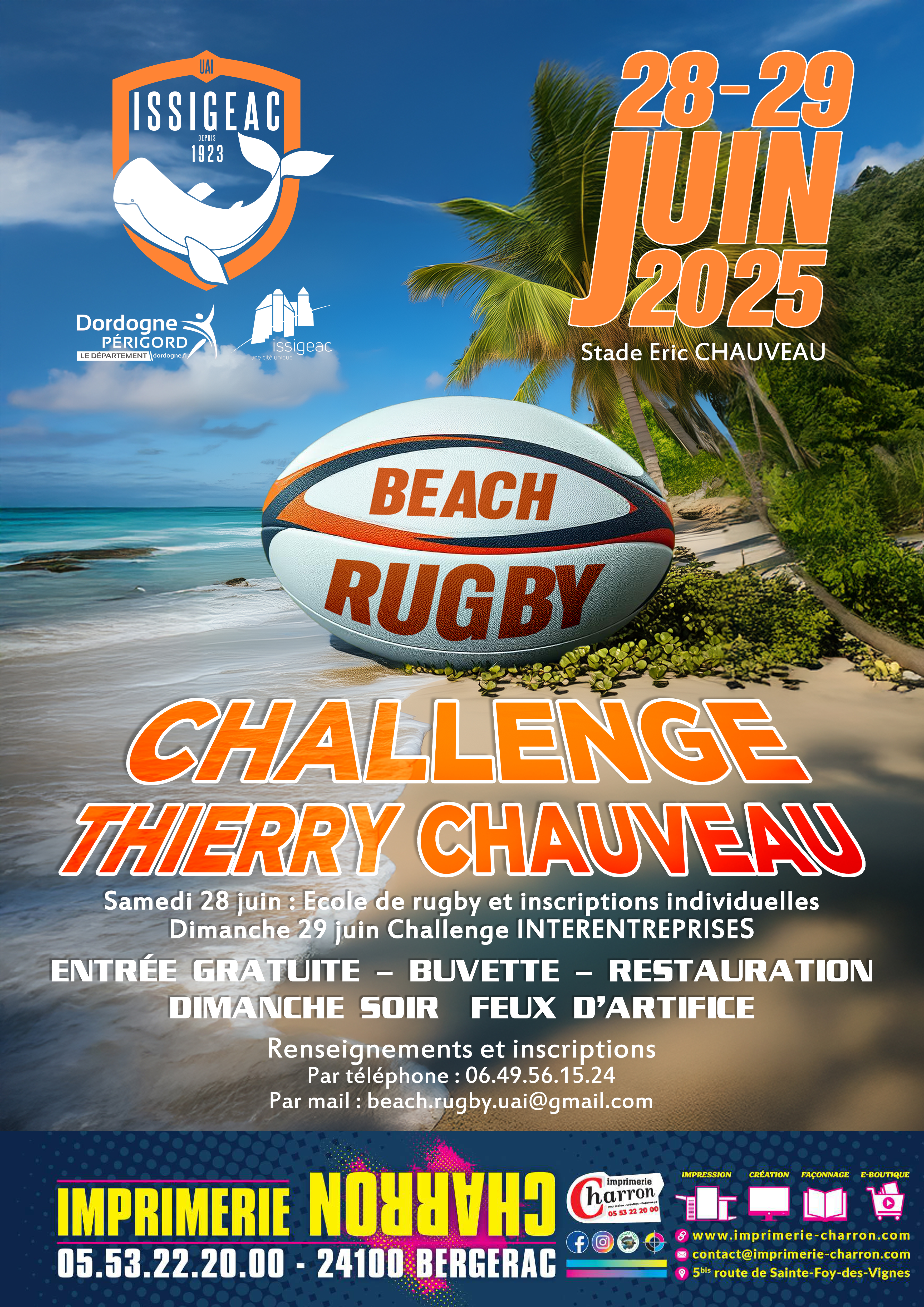 Ne manquez pas l'événement sportif de l'été ! Le Challenge Thierry Chauveau se déroulera les 28 et 29 juin prochains à Issigeac, sur la magnifique plage du Stade Eric Chauveau.