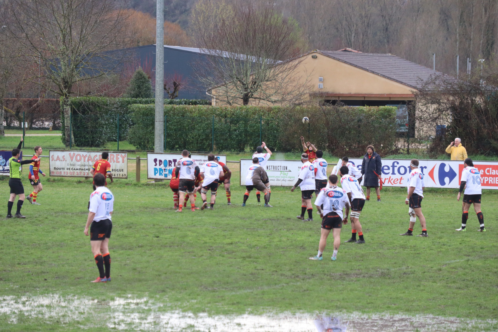 Le dernier quart d'heure du premier acte fait en effet très mal. Saint Cyprien marque trois essais rapprochés (26e, 31e, 35e), dont deux transformés, et s'envole au score (22-5, 40e). La mi-temps ne permet pas d'inverser la tendance de cette rencontre. Le score est figé, et n'évolue qu'une fois, avec un essai synonyme de bonus offensif pour les locaux à dix minutes de la fin (27-5, 70e).